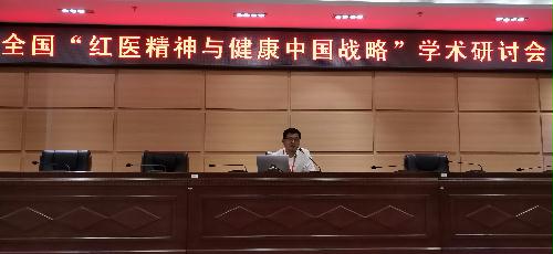 传承红医精神,助力健康中国。上午,中国社会科学院当代研究所姚力教授、中央苏区医药卫生史专家、赣南医学院刘善玖教授,河南师范大学刘洪河教授分别作了大会主发言。我校社科部于多珠、张文军、李德臣、杨亚楠撰写的《传承红医精神,为健康中国做贡献》一文被选入大会交流发言。在下午的大会发言中,于多珠教授从承德医学院光荣校史、红医精神与承医精神的渊源、如何传承红医精神,做中国好医生等方面作交流,他详细介绍了我校在阐释凝炼红医精神,宣传承医精神,打造独具特色的校园文化、构建“四贯通四结合”大思政育人格局等方面的举措,受到了与会者的广泛关注。