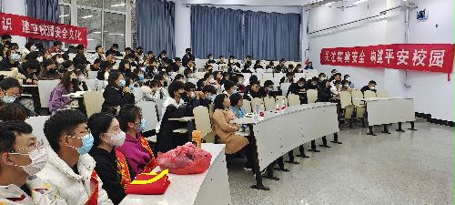 师生认真听讲 本次团日活动不仅向同学们普及了实验室安全知识,还增强了同学们的实验室安全意识,让同学们掌握了实验室意外事故逃生技能,具备了一定的安全实践能力,同时也为积极营造安全、稳定、和谐的学校实验室环境营造了良好的校园氛围。