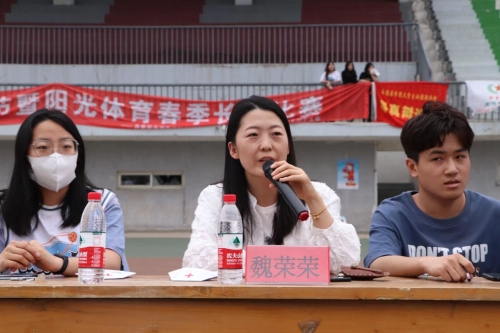 护理系2021级辅导员魏荣荣在文艺展演活动中寄语同学们
