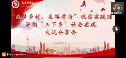实践团开展交流分享会 在此次实践活动中,实践团成员们始终秉承承德医学院“仁爱至诚,知行合一”的办学理念,坚持“深入基层、深入群众、深入社会”的原则,充分运用调研、宣讲、入户服务等多种方式开展实践活动,有效促进了乡镇基层医疗卫生的发展,受到了当地政府和村民们的一致好评。同时队员们也拓宽了自己的社会实践能力,一致表示要将实践成果与“严谨、求实、勤奋、创新”的校训良好结合,继续增强自身专业知识储备,不断在医学路上勇毅前行,以实际行动迎接党的二十大胜利召开!
