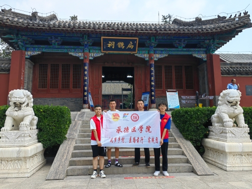 实践队员帮助老人干家务活 深入乡村看发展,助力乡村振兴梦 实践团成员在实践期间前往山东省青岛市平度市洪山四甲村,通过采访、调研等形式,实地查看村容村貌、文化建设等发展现状,全面了解当地经济基本状况、特色优势和发展前景等情况,尽力找出当今乡村振兴的难点痛点,深切体悟乡村振兴战略实施以来对乡村各方面带来的深刻变革。 学习岐黄文化,传递医者精神 实践团成员于8月4日前往河北省邢台市内丘县神头村扁鹊庙开展活动。实践团成员于中午到达扁鹊庙脚下,在山脚下的农家乐中采访了当地的守庙村民,并向其讲解宣传了此次实践活动的相关内容。随后,成员们从山门拾阶而上,参观了阴阳桥、名医堂、扁鹊墓冢、百草园、张仲景殿、李时珍殿、葛洪洞等建筑。通过本次实践,实践团成员们深刻明白了医祖“德行天下,医者仁心”精神的伟大意义,更加坚定了医路前行的决心,以青春微光绽放医者光芒,以实际行动践行医者誓言。