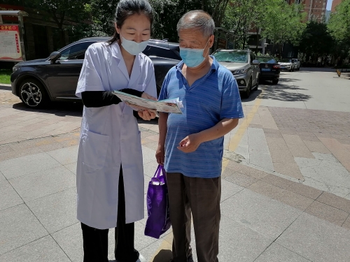团队成员向老人讲述新型诈骗手段,并普及防诈骗的方法 7月9日,团队成员联合西大街社区卫生服务中心举办爱心义诊和健康科普活动,参与人数共计150余人,发放并有效回收调查问卷、疾病预防保健宣传单各100份。在活动现场,团队的每一位成员都积极传递着爱的接力棒,对老人们询问的各种症状进行耐心的解答,并给予合理的健康宣教。
