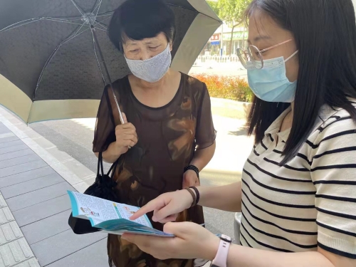 团队成员参观滨河社区合影留念 7月7日下午,团队成员在爱孝居家养老服务中心工作人员的带领下,为居家老人进行入户爱心义诊,共计为100户、350余人送医上门。义诊活动现场,团队成员为老人们提供血压监测、健康答疑等服务的同时,还向参与义诊活动的老人们宣传基础疾病知识及预防方法,发放疾病知识宣传手册200份,并建议老人们注意饮食、定期复查、多锻炼,养成健康良好的生活习惯。此次爱心义诊志愿服务活动得到了社区居民的一致好评,提高了老人们的自我保健意识,同时也让老人们感受到了社会的暖心关怀,进一步激发了尊老、敬老、爱老、助老的社会正能量。 7月8日,在滨河社区居委会的大力支持下,团队成员在居委会主任于岚的带领下充分学习养老防诈骗知识,综合常见案例分析了解各类诈骗形式的特点,揭秘不法分子的新型骗术并学习如何进行有效防范。在学习和培训结束后,团队成员走访社区的老人们,通过浅显易懂的话语,耐心地向老人们讲述典型的诈骗案例和新型诈骗手段,并普及防诈骗的方法。在防范养老诈骗宣传活动中,团队成员为老人们发放防诈骗宣传手册230份,发放并回收有效调查问卷150份。