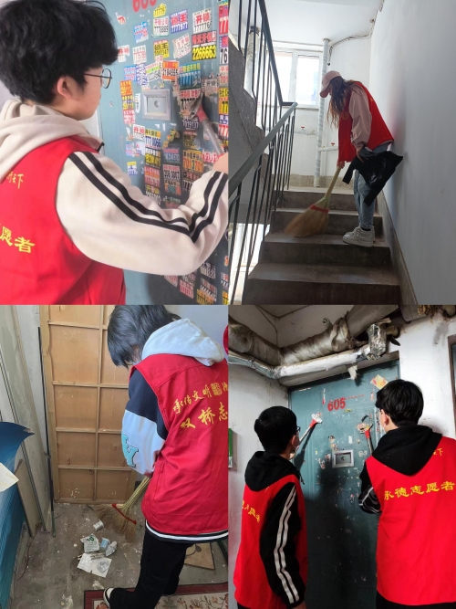 为积极学习宣传贯彻党的二十大精神,认真学习贯彻习近平总书记对深入开展学雷锋活动作出的重要指示,大力弘扬雷锋精神,提高全社会文明程度,引导学生坚定理想信念,基础医学院2022级儿科学第一志愿服务队于2023年3月18日至20日组织开展学习雷锋精神主题志愿服务活动。 “雷锋精神传天下,互助暖流漾人心”校外志愿服务活动 创建绿色和谐环境,共建生态文明。3月18-19日,志愿服务队分两组进行环保清洁进付家沟社区服务,志愿一组为社区清理楼道卫生,志愿二组为社区居民清理门上小广告。在志愿服务中,志愿一组成员共清扫30余栋单元楼,志愿二组成员共清理40余扇门上的小广告。志愿者们不怕脏、不怕累,服从调遣、认真劳动、积极参与,将负责区域打扫的干净整洁。志愿者在本次活动中以实际行动诠释“雷锋精神”,以积极的服务态度在社区居民中树立了良好形象。通过志愿活动,同学们增强了社会责任感,营造了良好的社会风气,为构建和谐社会贡献一份力量,践行雷锋精神。 (点击每张图片即可查看原图)