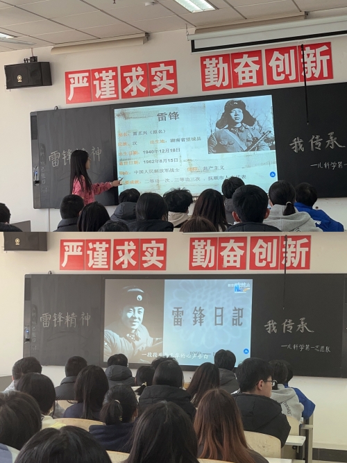 雷锋精神宣讲会 “厉行勤俭节约,弘扬雷锋精神”校内志愿服务活动 为建设环保文明校园,让勤俭节约概念和学习雷锋的精神深入生活。志愿服务队在教室里开展了“雷锋精神我传承”主题班会,带领志愿者们进一步认识雷锋,了解雷锋事迹,观看雷锋精神宣传片,学习并领悟雷锋精神真谛。3月18日,志愿者在学校内收集可回收废品,让废品变为实用物或装饰品,在校园搭建桌子,号召大家参与变废为宝活动。3月18日至20日,志愿者们参与了光盘行动,并将结果发布在社交软件上,本次行动让志愿者们深刻领悟了勤俭节约的重要性,增强了环保意识,为弘扬雷锋贡献青春之力。