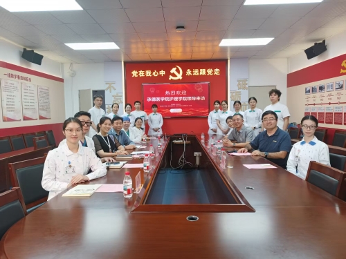 市中心医院活动合影 本次活动以实地走访为主,主要通过座谈会进行交流,着力构建校院联动、多维赋能的学生发展支持体系。座谈会上,各实习医院的实习负责人纷纷表示,我校护理系的实习生理论知识扎实、基本功过硬,学习态度端正,充分肯定了护理系的育人成效。同时,带教老师也结合三个月的带教经历提出了具体建议,比如需进一步加强临床思维能力的培养,并注重与患者的沟通交流技巧等。