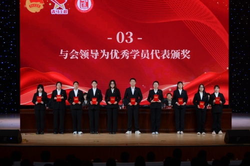 2024年优秀学员代表领奖 王瑞婷作2025年青马班开班动员讲话。她指出,学生党校培训作为学校常态化开展共产主义理想信念教育的核心载体,与“青马工程”一脉相承,既是学校战线必须扛起的首要政治任务,更是为党培育中国特色社会主义事业合格建设者和可靠接班人的关键抓手。她强调,全体学员要坚定理想信念,明确自身使命,深入学习领会马克思主义科学理论,坚持勤学善思,以脚踏实地的精神投入到医学学习中去。她希望,全体学员要将理论学习与专业学习、社会实践紧密结合,练就可堪大用的真才实学,努力成长为知行合一、躬行践履的医务工作者,以青春之力诠释医者担当,为建设健康中国注入青春动能。