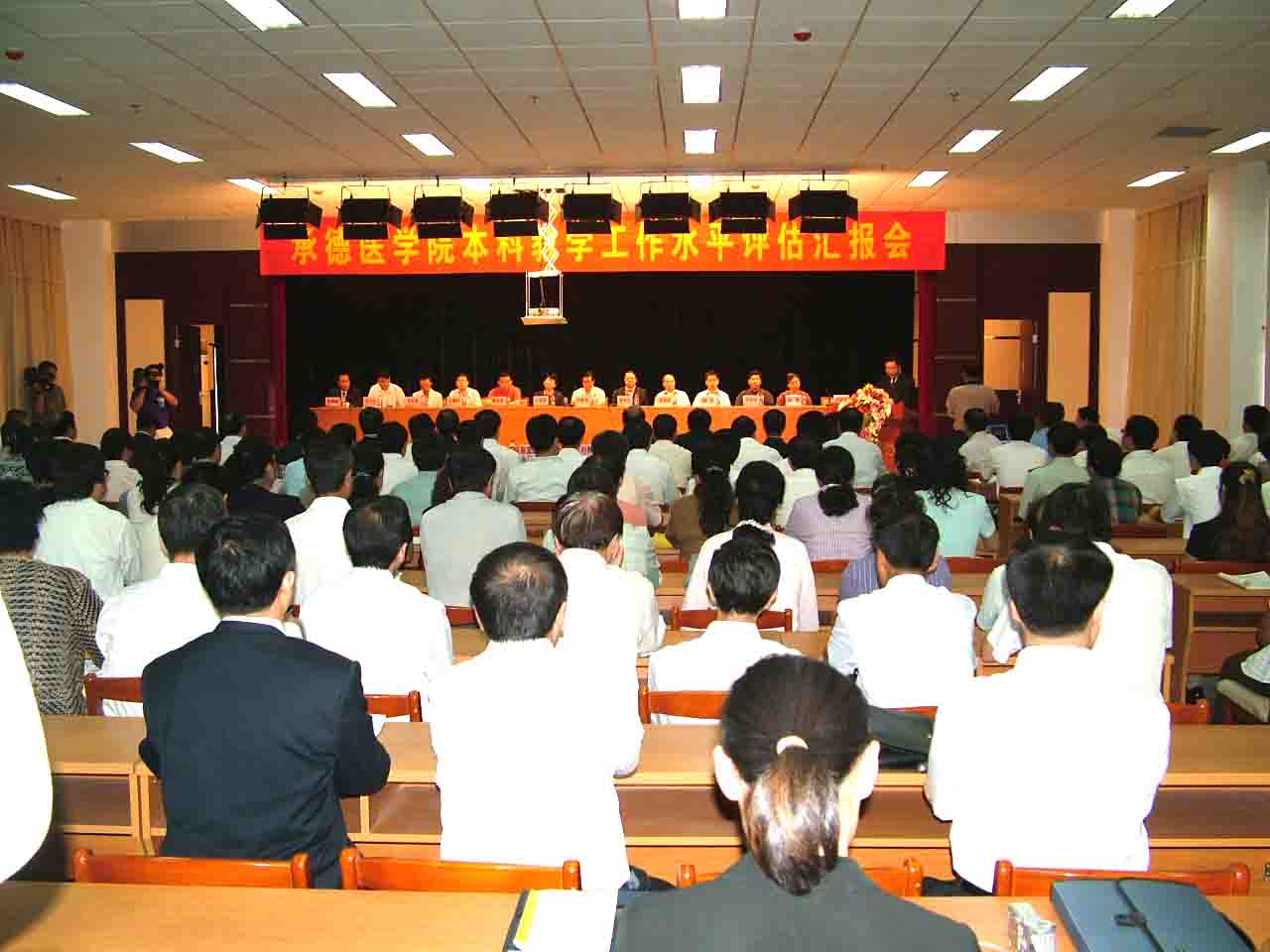 9:30,承德医学院本科教学工作水平评估汇报会在学院多功能厅隆重举行。国家教育部专家组全体成员、学院党政领导、副科级以上干部参加了会议。河北省教育厅副厅长刘教民出席了会议。
