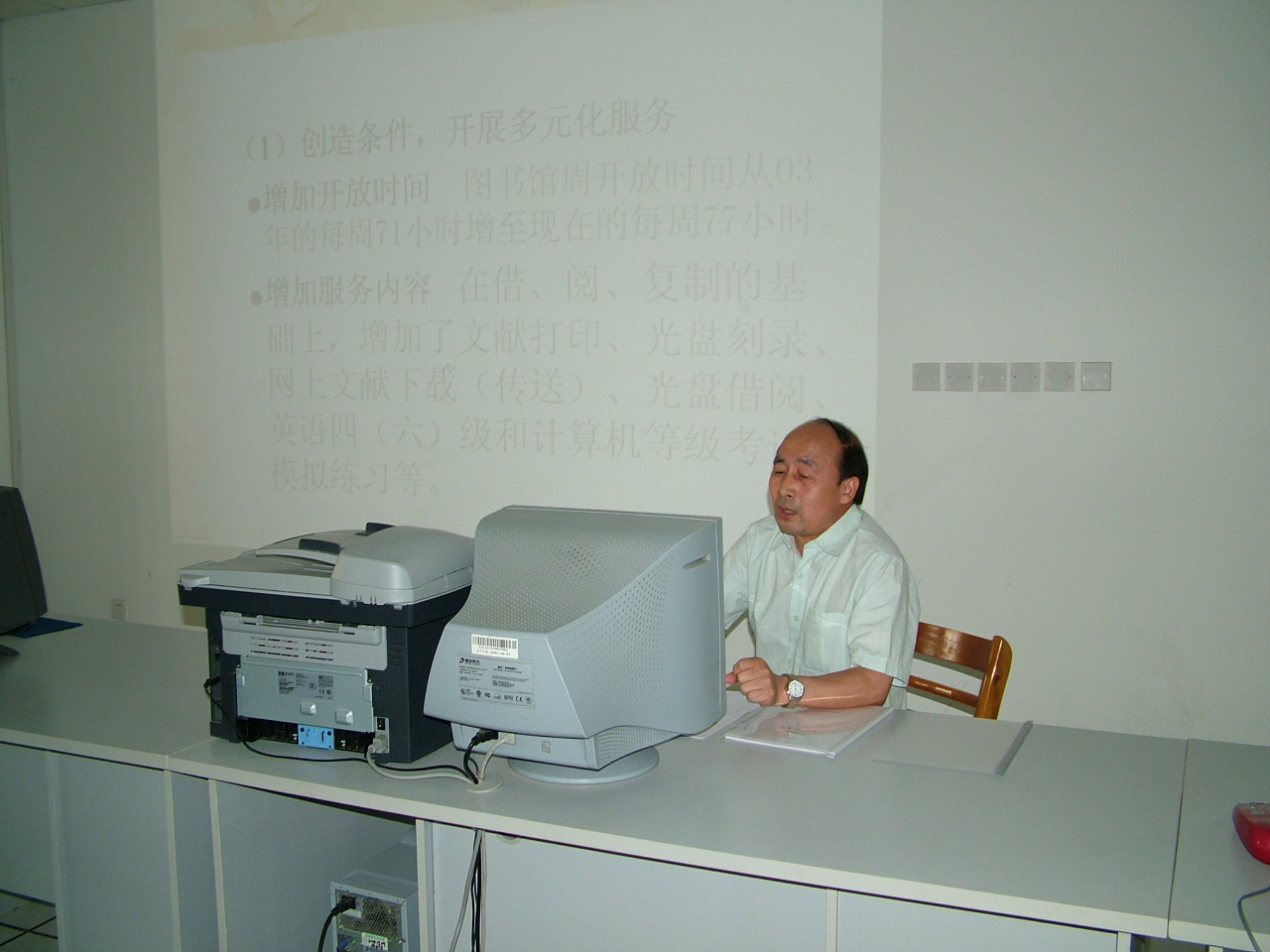 首先专家组来到了图书馆五层电子阅览室,听取了姜馆长关于《更好地发挥图书馆的功能,为教育教学提供一流服务》的汇报,汇报中就图书馆的基本情况、图书馆的服务、利用效果以及存在的问题等四个方面进行详细介绍。