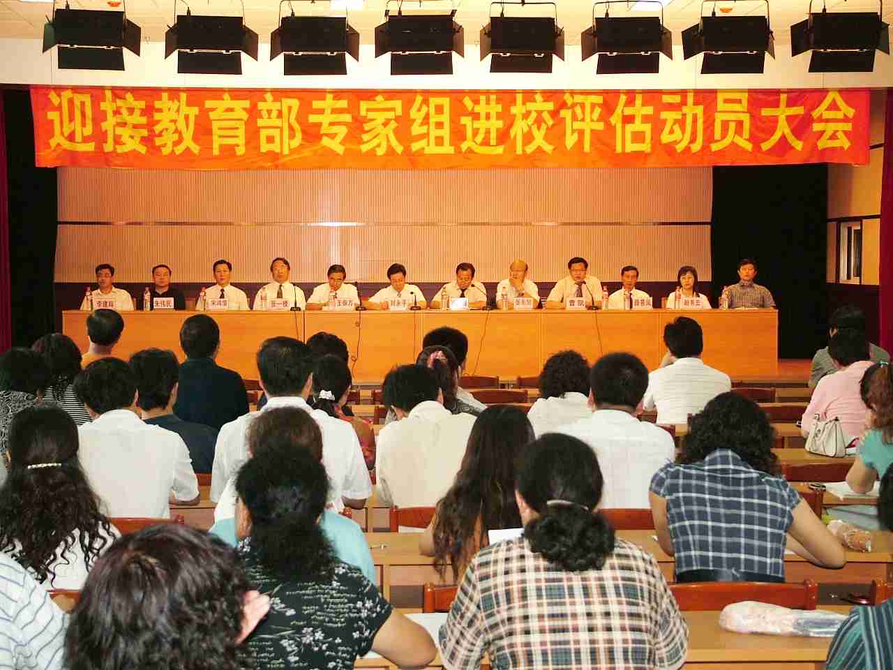 2007年9月2日,迎接教育部专家组进校评估动员大会在学院多功能厅召开。领导班子全体成员、副科级以上干部、各教研室主任及实验室主任参加了本次会议。 学校评建工作已经进入了专家组进校之前的最后冲刺阶段。学院领导对这次大会给予了高度重视,领导班子全体成员、第一、第二附属医院领导在主席台上落座。张树峰院长主持了会议。 学院教评总指挥副院长曹凯首先对学院迎评估、促建设工作进展情况进行了通报。指出,通过一段时期的努力,评建工作从总体上有了很大进展。今后的努力方向是:把工作做深、做细、做实、做透,保证政令畅通,各项工作落到实处。曹凯副院长通报了前一天党政联席会的精神,介绍了学院整体评建工作的汇总情况,对下两周的工作进行了部署。强调要加强校园文化建设,做好迎接专家组进校的各项准备工作。 党委副书记王振方就专家组进校前后的工作进行了安排布署。强调了接待工作的重要性,特别强调要注意细节。每一名老师和学生都是接待工作的主体。要通过接待工作展示良好的精神风貌,反映学院的管理水平和工作效率,体现出学校的凝聚力和战斗力,展示学院的亮点。 张一模副院长特别强调了学校的环境卫生问题。各部门各负其责,做到窗明几净,整洁无尘,展示新校区崭新的风采。 党委书记刘永平做了总结讲话。他指出,这次会议是专家组进校前最后一次动员大会。教学评估工作不是某个人的事,是全校教职工的头等大事,每个人都不能有丝毫懈怠。要树立大局意识、责任意识、兴衰意识。做到三个务求:一是务求工作过硬,做到“严、实、深、细、快”;二是务求状态良,以饱满的精神、整洁的仪表、优雅的环境展示我院风采;三是务求准备充分。 院长张树峰最后做了总结讲话,重申各部门一定要召开专门的会议,研究如何落实本次会议精神,所有工作在8号之前必须结束。在教评前的最后一周全院上下要全力拼搏,争取不留遗憾。