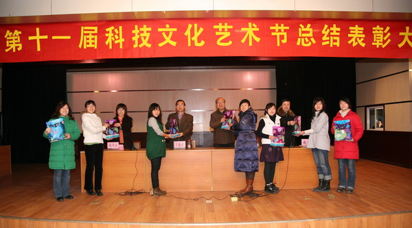 2008年12月15日下午,学院第十一届科技文化艺术节表彰大会在多功能厅隆重召开。院科技文化艺术节组委会主任、党委王振方副书记和张东旭副书记等领导及300余名师生参加了大会,与会领导为艺术节获奖单位、个人及“挑战杯”2008“动感地带”河北省大学生创业计划大赛获奖作品的学生代表和指导教师进行了颁奖。