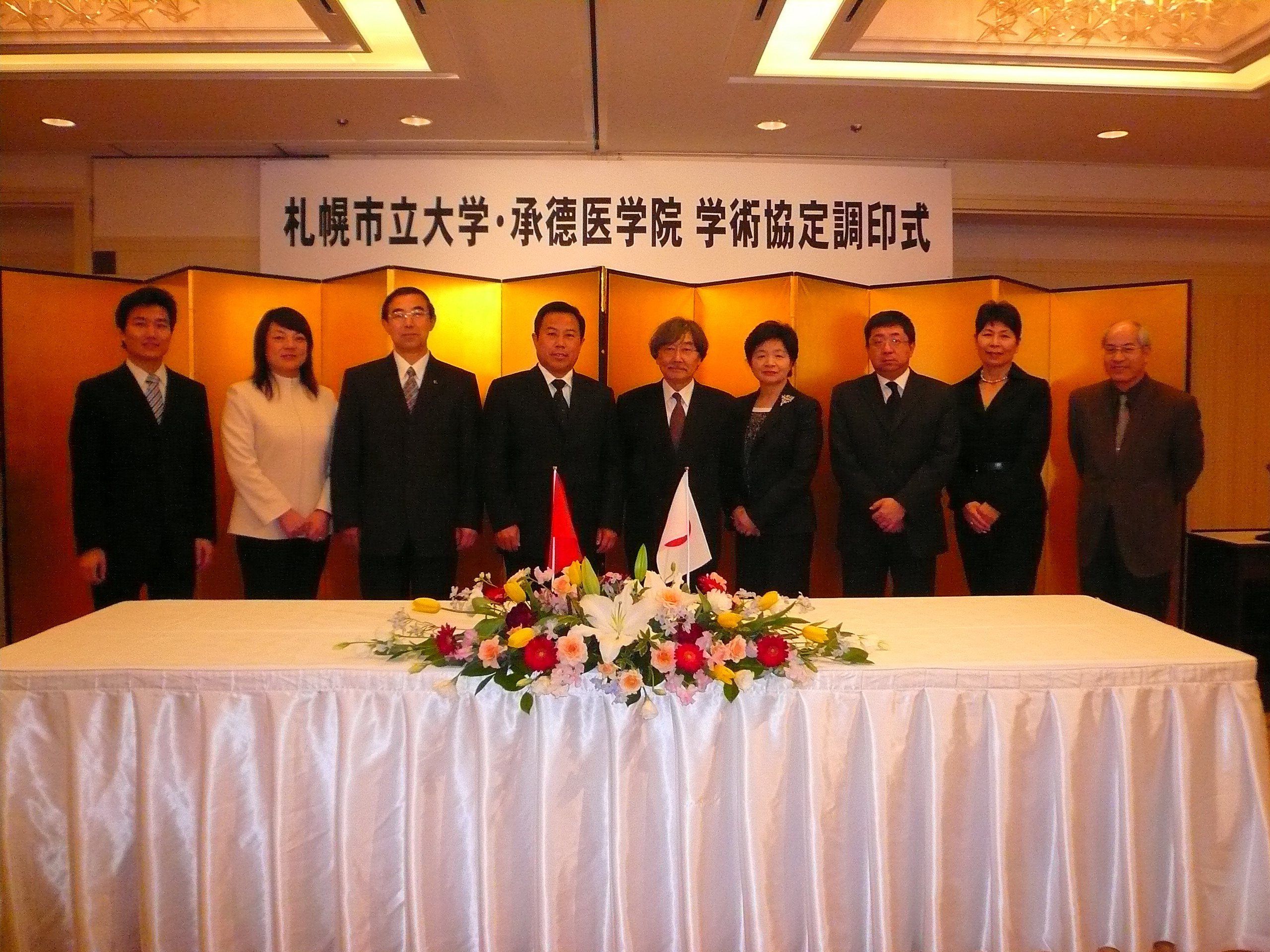 3月2日,代表团到达札幌后受到了札幌市立大学护理学院Soodi教授和玛丽女士的热情接待。第二天,学术交流代表团与札幌市立大学原田昭校长,该校护理学院中村院长及Soodi教授会谈。双方介绍了彼此学校的概况,讨论了会面的目的及下一步的设想。随后,张树峰院长做了题为《一个古老而年轻的课题――中医学“治未病”学术思想研究(概述)》的学术报告,札幌市立大学全体教师及相关人员听取了报告。在宾馆双方举行了学术交流签字仪式。仪式上,原田昭校长和张树峰院长分别发表了协议感言。双方领导均对本次协议签订非常满意,并期望今后的进一步合作。