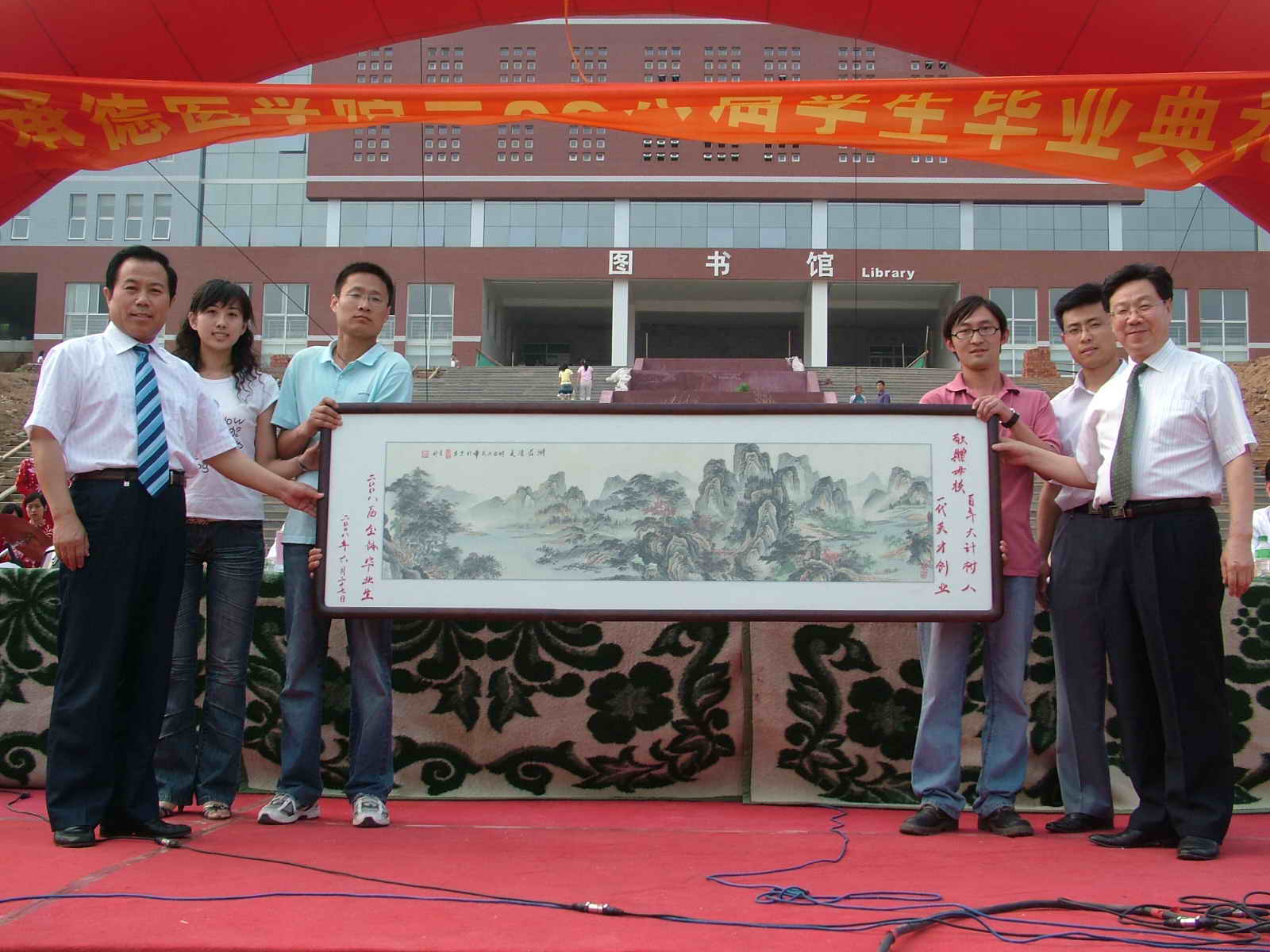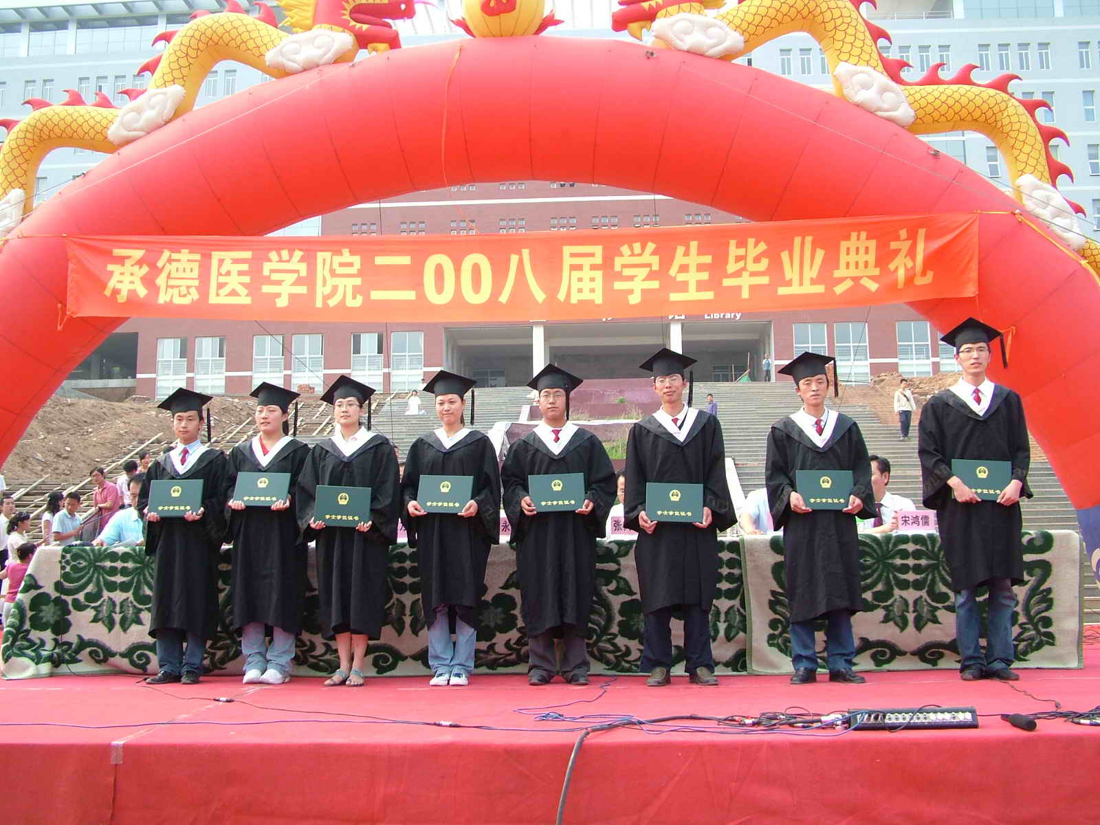 我院今年共有本专科毕业生1556名。本科生1103名,其中1077名学生获得学士学位;专科毕业生453人,其中临床专科毕业生170人,119人报考专接本,85人已被录取,(录取率为71.4%)毕业生中有285名同学光荣入党,13名同学获得国家奖学金,6名学生被评为省级“三好学生”,134人次荣获学院各级各类奖学金和“三好学生标兵”,282人次被评为学院“三好学生”。我院今年218名学生考取硕士研究生,其中中医系学生考研率达到41.5%。张院长鼓励大家:虽然你们就要离开母校,但无论走到哪里,你们始终都是一名承医人,承医永远是你们的家!祝愿2008届全体毕业生鹏程万里!祝同学们一路顺风!
