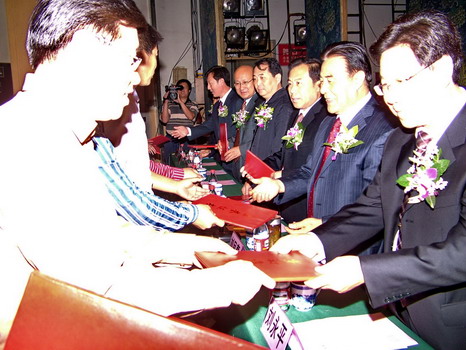 嘉宾和学院领导为先进代表颁发荣誉证书 |