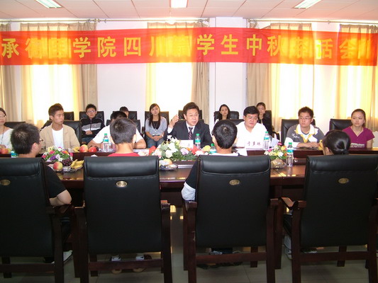 丹桂飘香溢满园,欢歌笑语颂佳节。 9月14日,是被国家列为法定假日以后的第一个中秋节,也是“5・12”汶川特大地震后的第一个中秋节。在这个特别的日子即将来临之际,9月12日,党委书记刘永平等学院领导带着象征团圆喜庆的月饼以及精心挑选的中秋佳节传统果肴与全体四川籍学生座谈,共度中秋。