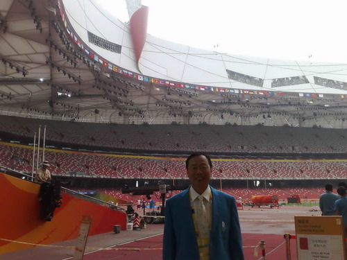 身着裁判服的赵佳教授在鸟巢留影 |