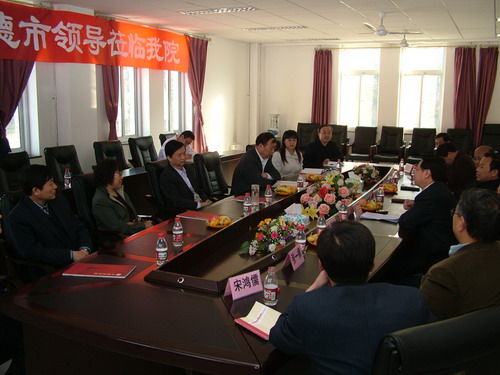 4月26日下午,市委书记杨�在市委秘书长苏爱国的陪同下,轻车简从,来到我院开展工作调研。学院全体党政领导及附属医院部分院领导参加了座谈。