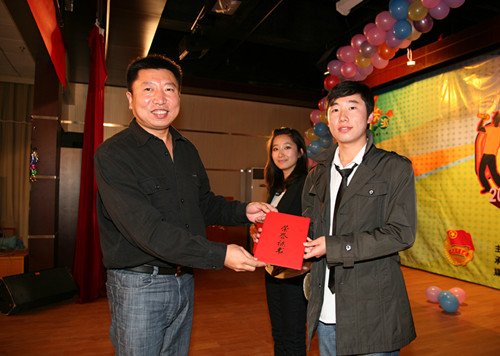 团委书记沈浩为一等奖获奖选手颁发证书