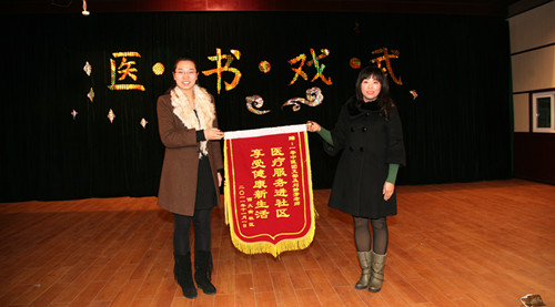 该团日活动共分为四个部分,分别是书法绘画展、西大街社区义诊、演讲比赛和文艺汇演,涉及到中医、戏剧、书法、武术等多种文化元素。演出中间,西大街社区党总支支润芳书记向10级中医团支部表达了感谢,并赠予该团支部及辅导员刘静芳老师锦旗,希望与该团支部建立长久的合作关系。