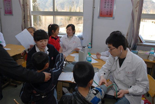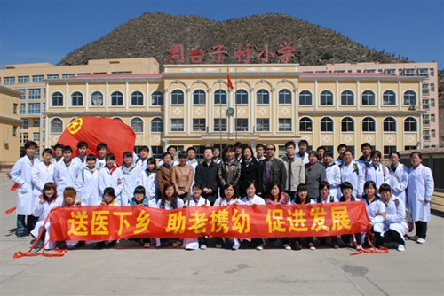 志愿者们来到承德市滦平县周台子村,队员们分成两组,分别对老人和儿童进行义务医疗体检,并分派各个小组成员对老年公寓的老人们以及周台子村小学的小学生们进行疾病预防知识的宣传。附属医院老年病科的大夫们为60多名老人做了专业检查,儿童组的志愿者们认真的为200多名学生进行各项体检:肺活量、身高体重、血压、心率、听诊、嗅觉、色觉、视力、牙齿、脊柱等,活动进行得有条不紊。志愿者们认真负责的态度得到了周台子村人民的一致赞扬。