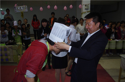 团委书记沈浩为获得一等奖及“厨神”称号的同学颁奖
