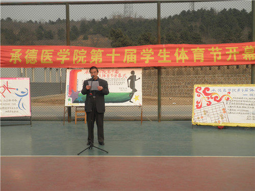 3月31日下午,由校学生会体育部主办,各学生分会协办的承德医学院第十届学生体育节在山上篮球场隆重开幕。校党委副书记王振方、团委书记沈浩及1000余名学生参加了本次开幕式。开幕式由团委书记沈浩主持。
