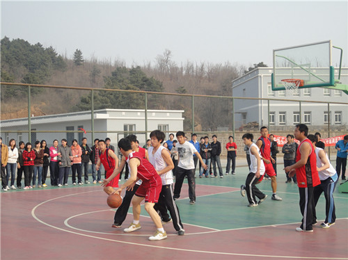 开幕式后举行了师生篮球赛。比赛在激烈而紧张的气氛中进行,教师们经验丰富,进攻防守时机恰当。学生们也毫不示弱,配合紧密,积极拼抢。最后教职工代表队以53:50的成绩赢得了比赛。