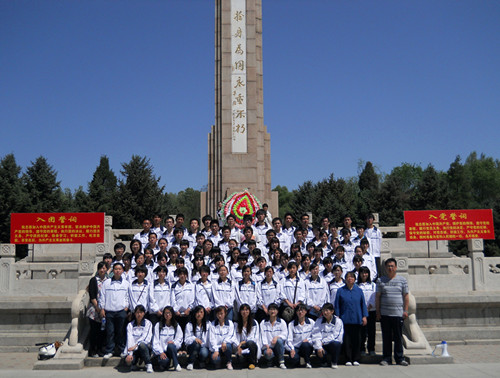 在建党90周年这个光辉时刻,为积极开展创先争优活动,做好党的“三项教育”工作,缅怀革命先烈,牢记责任使命,弘扬爱国主义精神,加强爱国主义教育,5月22日上午,基础部09级党支部全体党员和入党积极分子,怀着崇敬的心情来到承德隆化董存瑞烈士陵园拜谒英雄,举办了以“红心赤诚慰英魂・党旗高扬报国恩”为主题的爱国主义教育活动。