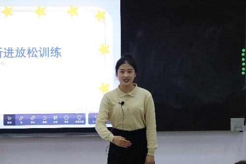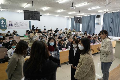 一等奖获得者王雯萱授课 现场展示环节结束后,周晓慧对本次大赛作点评。她对本次大赛表示充分肯定,并对选手的教案设计、对象分析、过程设计、分享互动等几个方面提出了宝贵建议。
