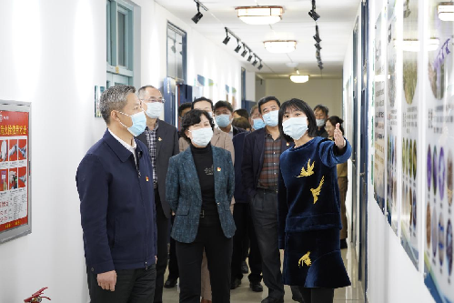 学校领导陪同参会领导、代表走访学校中药文化长廊