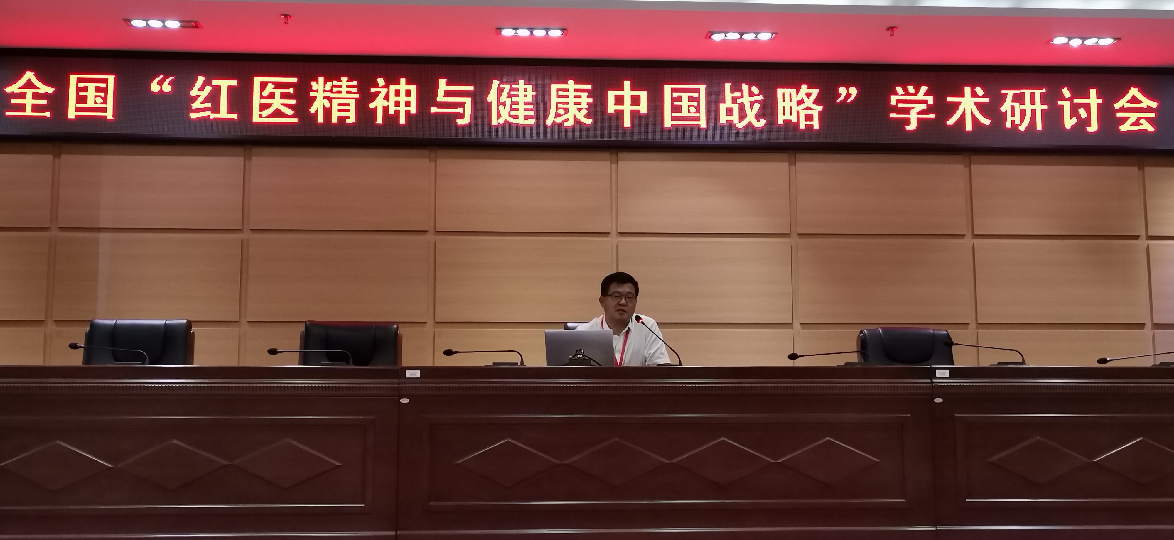 传承红医精神,助力健康中国。上午,中国社会科学院当代研究所姚力教授、中央苏区医药卫生史专家、赣南医学院刘善玖教授,河南师范大学刘洪河教授分别作了大会主发言。我校社科部于多珠、张文军、李德臣、杨亚楠撰写的《传承红医精神,为健康中国做贡献》一文被选入大会交流发言。在下午的大会发言中,于多珠教授从承德医学院光荣校史、红医精神与承医精神的渊源、如何传承红医精神,做中国好医生等方面作交流,他详细介绍了我校在阐释凝炼红医精神,宣传承医精神,打造独具特色的校园文化、构建“四贯通四结合”大思政育人格局等方面的举措,受到了与会者的广泛关注。