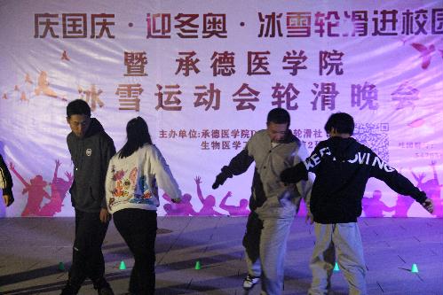 为深入贯彻习近平新时代中国特色社会主义思想,落实习近平总书记发展冰雪运动的重要指示精神,同时呼应2022年冬奥会“三亿人参与冰雪运动”的号召,提高师生对冰雪运动的兴趣,2021年10月6日,我校生物医学工程系2020级生物信息学第二团支部联合承德市冰雪轮滑运动协会、承德市高校冰雪轮滑联盟会及我校大学社团联合会DNA冰雪轮滑社共同开展 “青春热血,轮滑无极限”主题冰雪运动会轮滑表演。 (点击文中每张图片即可查看原图)
