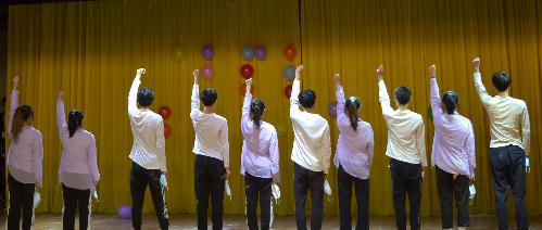 领导老师观看本次活动 充满青春活力的啦啦操《push push》拉开序幕,激情昂扬的舞蹈展现了生物医学工程系学子独特的魅力,带动了现场的气氛,营造了欢快的氛围。系古典舞团带来的舞蹈《悠然见南山》与歌曲《kill the game》的表演,古典的美与流行歌曲劲爆的碰撞,柔美与现代节奏相映。问答游戏穿插在两个表演中,增加同学之间的互动。系现代舞蹈队带来的舞蹈《你的答案》体现了抗疫天使大爱无私的奉献精神。诗朗诵《扬帆起航》激昂登场,祝愿各位学子的梦想在承医扬帆起航,带着美好的希望继续前行。