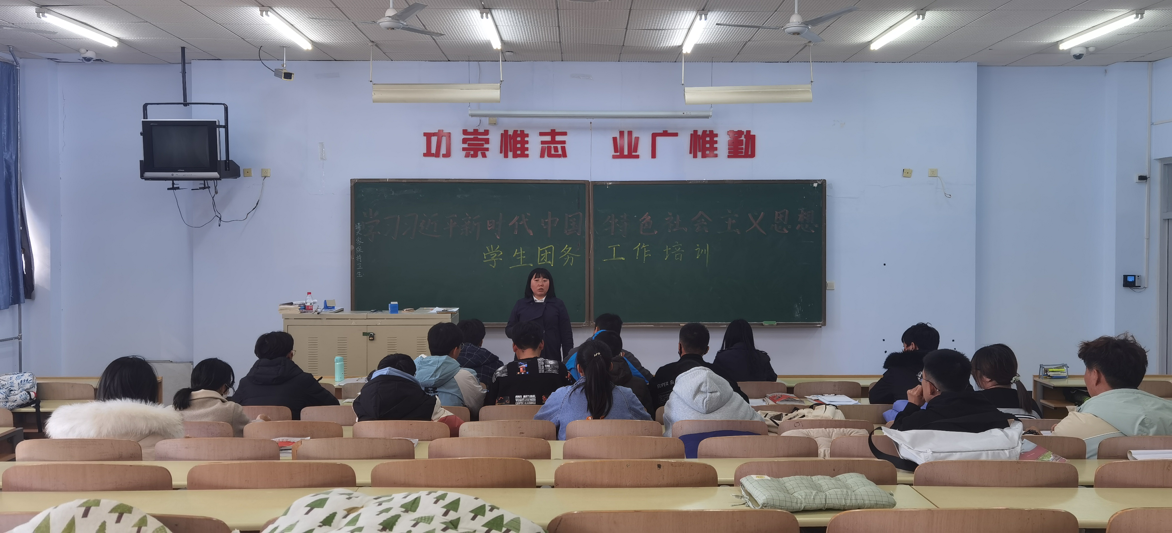 为深入推进习近平新时代中国特色社会主义思想“三进”工作,坚持党建带团建,贯彻落实上级团组织有关工作要求,引领团员青年加强理论学习,提升干事创业的能力和本领,2021年10月20日中午,基础医学院2021级学生党支部于教学楼开展“学习习近平新时代中国特色社会主义思想”主题学生团务工作培训会。基础医学院2021级临床医学64名学生班干部参加会议,李静老师主持会议。