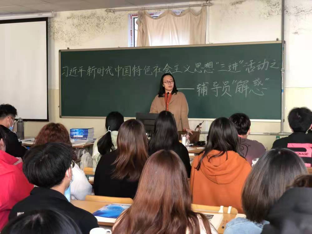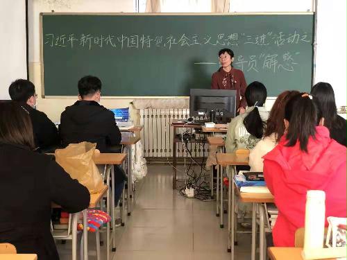 为深入学习贯彻习近平新时代中国特色社会主义思想和习近平总书记“七一”重要讲话精神,切实把全校学生的思想和行动统一到中央、河北省委重大决策部署上来,扎实推进习近平新时代中国特色社会主义思想“三进”工作,落实立德树人根本任务,2021年10月17日至24日,临床学院2018级学生党支部开展习近平新时代中国特色社会主义思想“三进”主题教育活动。 辅导员李庆林、于淼分别对同学们开展习近平新时代中国特色社会主义思想相关知识“解惑”活动,为同学们讲述习近平新时代中国特色社会主义思想相关内容,引导同学们关注身边由于践行习近平新时代中国特色社会主义思想而产生的积极变化。 (点击每张图片即可查看原图)