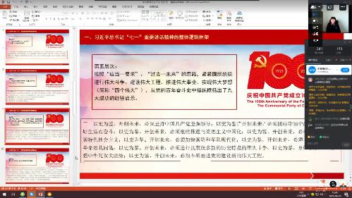 为进一步深入学习习近平总书记在庆祝中国共产党成立100周年大会上重要讲话精神,推动党史学习教育进一步走深走实,临床学院2017级学生党支部邀请学校社科部思想政治理论课教师李静对习近平总书记“七一”重要讲话进行了专题宣讲。