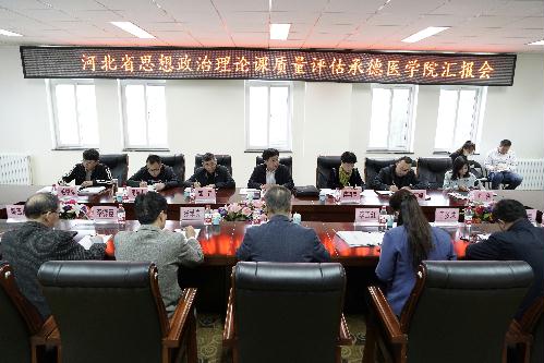 2021年10月6日,河北省教育厅第二批高校思想政治理论课质量评估工作组对我校思想政治理论课进行质量评估。以河北经贸大学党委副书记陈亮为组长、河北经贸大学马克思主义学院院长柴艳萍为副组长的专家组一行7人,在学校行政楼312会议室听取了工作汇报。校长唐世英、学校党委副书记张学良、副校长李玉红及相关职能处室负责人、社科部教师代表参加了此次会议,汇报会由张学良主持。 (点击图片即可查看其大图)