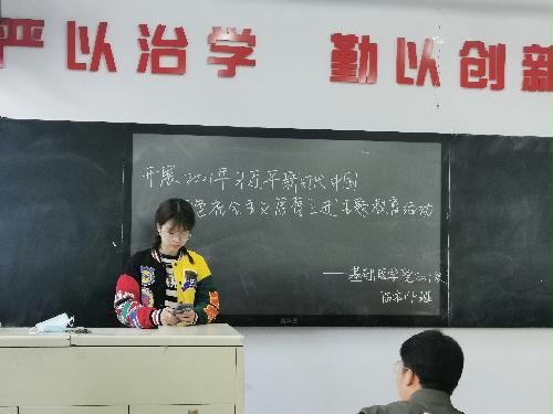 基础医学院2019级临床医学专业以学生社团为抓手,各班为单位,开展习近平同志《论中国共产党历史》经典诵读活动,各班学生代表带同学们穿越时间跨度,去聆听革命岁月的历史音律,透过空间距离,感悟时代发展的奋斗历程,一个个故事包含了一代代青年亘古不变的爱国热情,激发了同学们爱党、爱国、爱家乡的强烈情怀,积极引导同学们大力弘扬英雄精神,汇聚实现中华民族伟大复兴的磅礴力量。