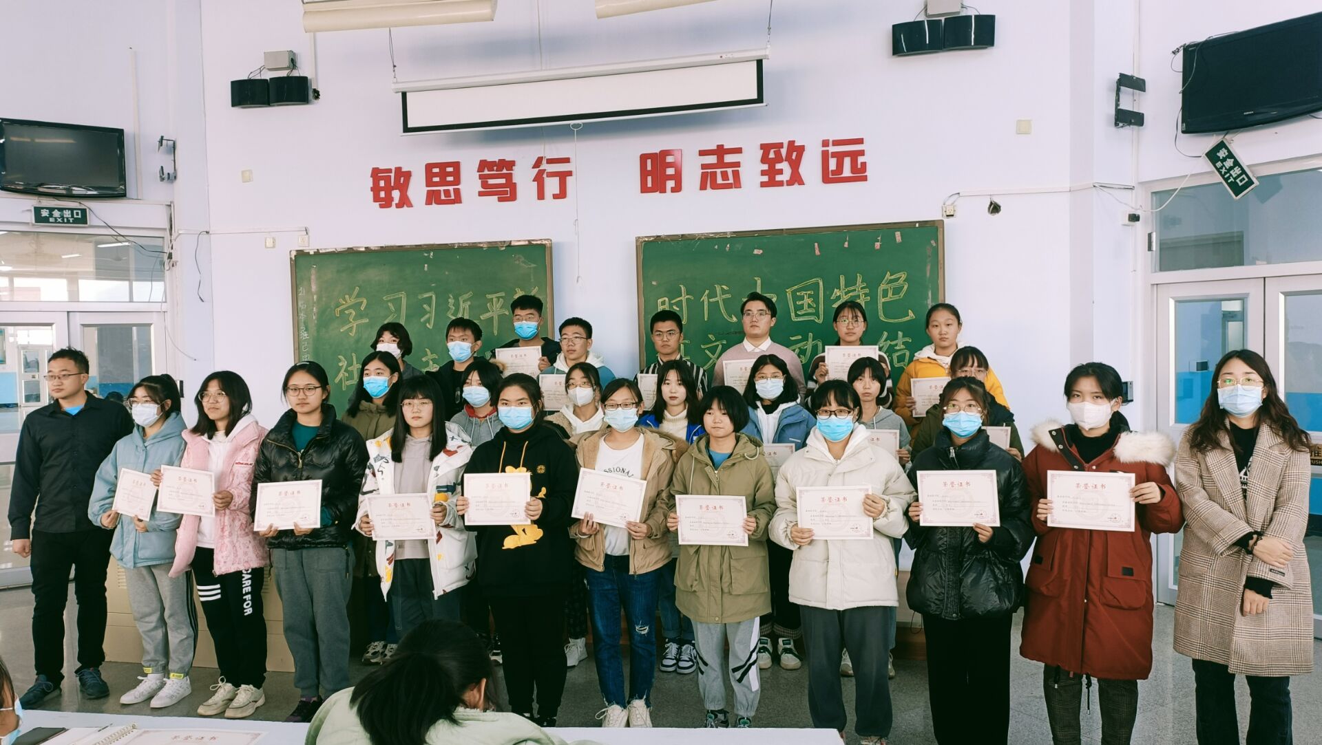 为了让同学们更加广泛的参与到党史学习教育中,积极主动学习党史,加深对党的认识,为复兴之路添砖加瓦,争做一名合格的新时代大学生,基础医学院2021级学生党支部于2021年10月29日举行“学习习近平新时代中国特色社会主义思想”征文活动,共收集征文981份,并于2021年11月3日举行学习习近平新时代中国特色社会主义思想征文活动总结大会。基础医学院2021级学生党支部全体成员和基础医学院2021级征文活动获奖的学生参加此次活动。 在征文活动总结会上,党支部罗宇老师阐述了中国共产党自1921年成立以来的百年光辉历程,为同学阐述了革命精神、艰苦创业精神、改革开放精神、新时代伟大奋斗精神等中国共产党的精神谱系,坚定了同学们的理想信念,提升了同学们的思想境界,对同学们的党史知识储备有了一定的扩充。党支部章蒙老师对获奖同学提出表扬,章蒙简要说明了建党一百周年的历史意义与现实意义,对同学们提出了听党话,跟党走的要求,希望同学们用知识武装头脑,以党的章程作为风向标,坚守初心,提升自我修养。而后由征文活动优秀作品学生代表朗读获奖作品,同学们精神饱满,满怀深情地朗读了学习习近平新时代中国特色社会主义思想的新的体会。 (点击每张图片即可查看原图)