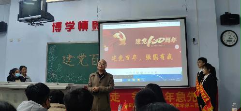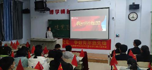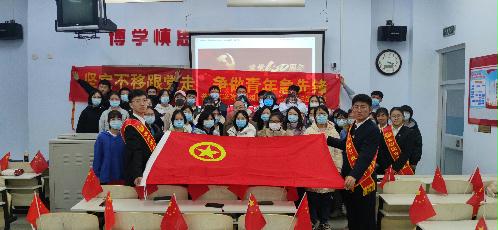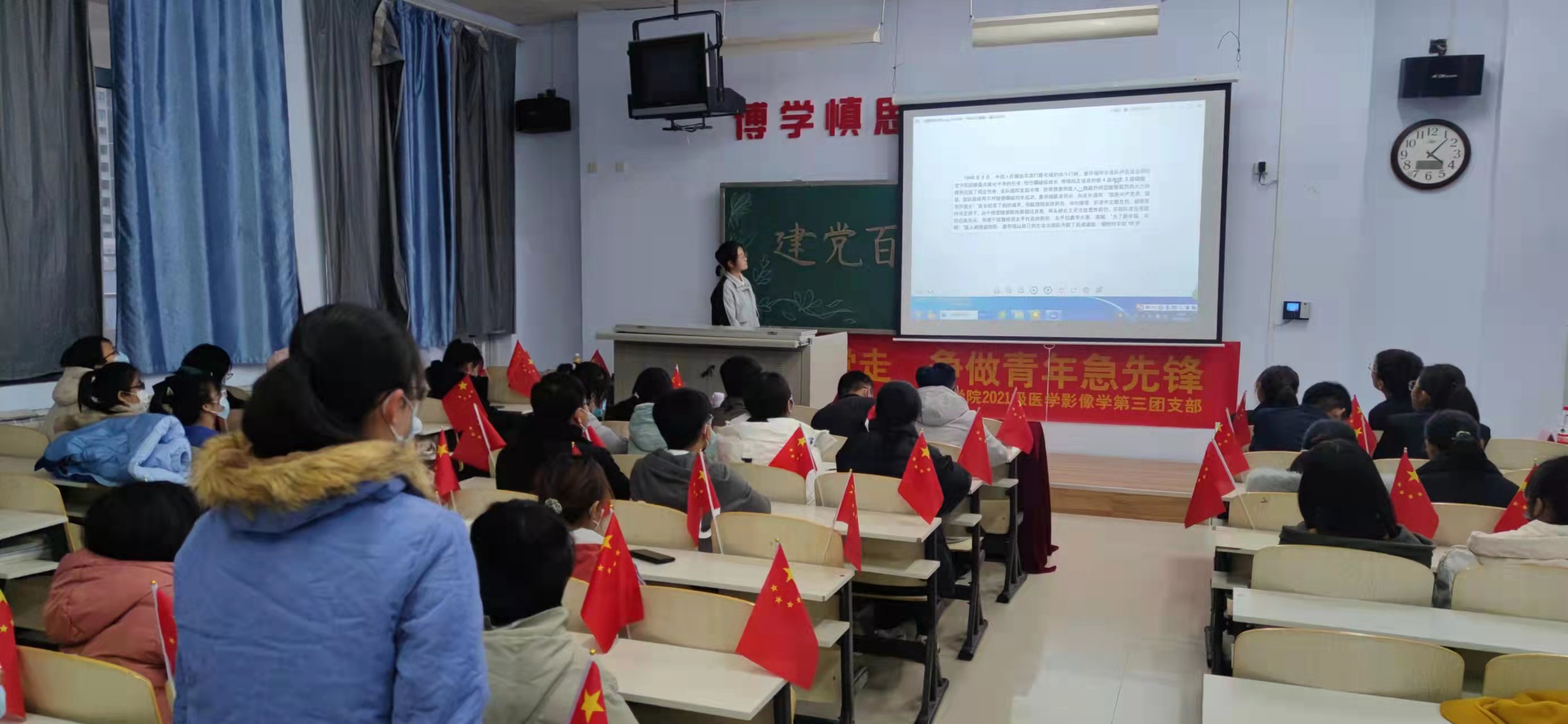 朗读红色精神卡片 11月6日,支部全体成员在教学楼进行“建党百年,强国有我”主题团日活动。基础医学院2021级第二学生工作办公室辅导员老师翟冰峰、章蒙、杨言参加活动。本次活动由团支书刘紫晔主持。 翟冰峰发言,激励同学们立足实际,勇当先锋,不负韶华,不负期望,团结协作,以人为本,展现出当代大学生和医学生应有的积极向上、一丝不苟的精神风貌,用实际行动践行“请党放心,强国有我”的庄严承诺。刘紫晔讲解中国共产党成立的背景、发展史和奋斗史,让同学们了解了党的艰难发展历程,感受到了无数先辈在那段岁月里英勇无畏,前仆后继,保家卫国的壮义精神。同学们作“建党百年,强国有我”主题演讲,介绍了在中国共产党的带领下中国的飞速发展,让同学们深刻明白没有共产党就没有现在的幸福生活。在浓浓的感恩情怀中,同学们对革命烈士图像进行辨识并讲述革命烈士的英雄事迹,增强了同学们对革命烈士的崇高敬意。刘紫晔组织同学们观看电影《我和我的祖国》,极大地增强了同学们的爱国热情。数风流人物,还看今朝,支部全体成员集体观看建党百年主题MV《少年》,践行习近平总书记的“未来属于青年,希望寄予青年”的谆谆教导,让同学们明白时代赋予我们中国少年的责任。在场老师和同学们在“建党百年,强国有我”的条幅上签字合影,增强了自己的责任感和使命感,立志为祖国建设发展贡献出自己的一份力量。