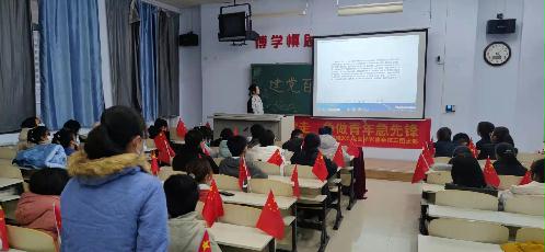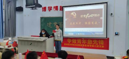 团支书刘紫晔讲解中国共产党成立的背景、发展史和奋斗史