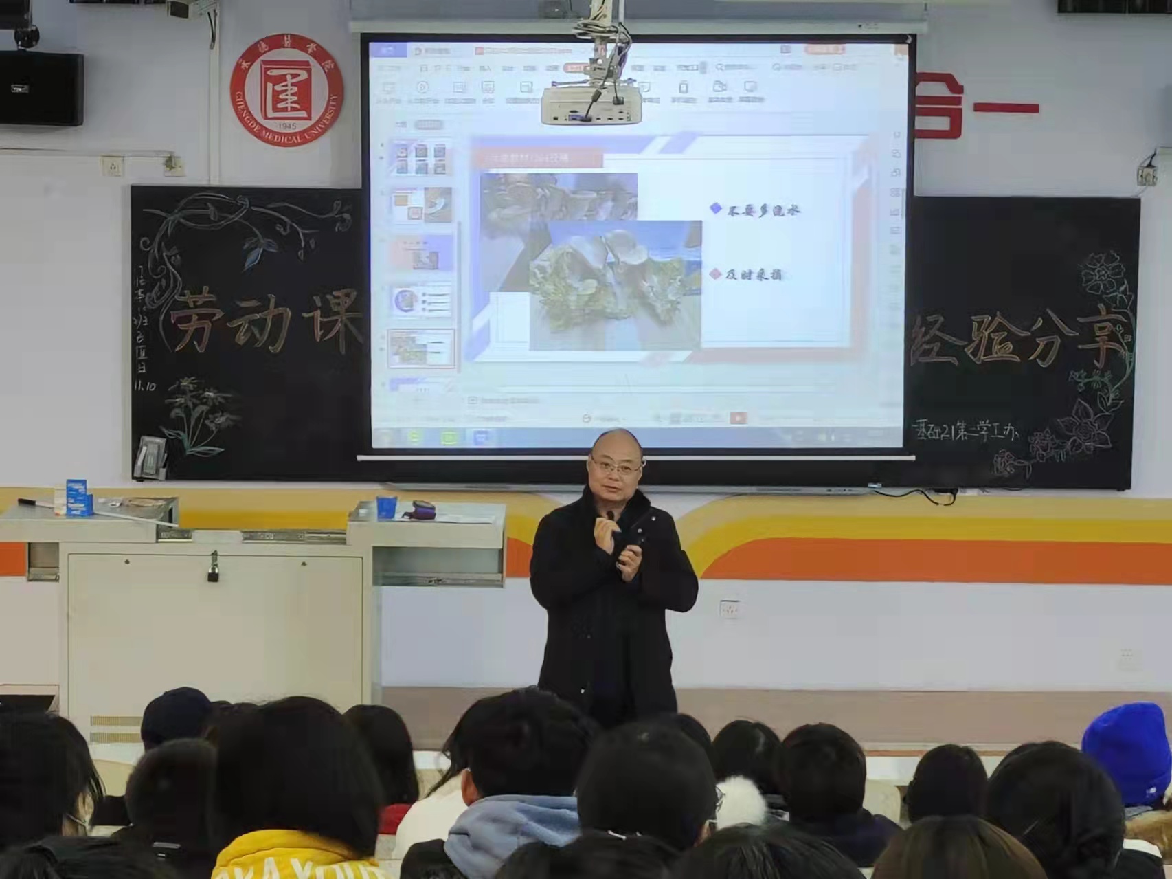 为增强同学们的劳动意识,树立正确的劳动观,在实践中深刻感受劳动内涵,促进同学们德智体美劳全面发展,基础医学院2021级第二学生办公室创新劳动课教育方式,增设种植蘑菇劳动实践活动,并于11月11日在教学楼开展劳动经验分享会。基础医学院2021级第二学生办公室辅导员老师翟冰峰,杨言参加活动。活动由辅导员章蒙主持。 (点击每张图片即可查看原图)