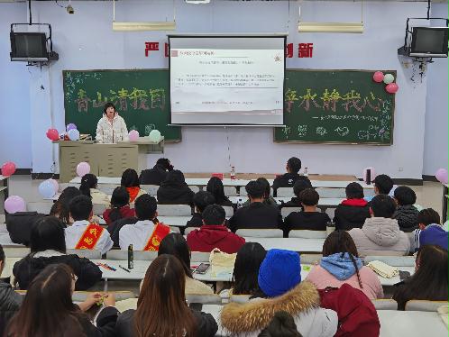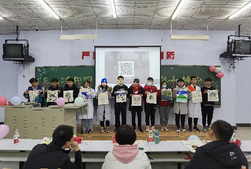 第二团支部全体成员与领导老师合影 本次团日活动分为两个环节。第一环节为11月12日下午在教学楼210z举行的“青山清我目,净水静我心”主题班会活动。活动开始为展团旗唱团歌,此次活动在本支部成员嘹亮的歌声中拉开序幕。袁婧老师向支部同学讲解当今环境问题的严峻性并科普绿色经济及环保知识,带领支部成员学习塞罕坝精神,并要求支部同学深刻领会塞罕坝精神,践行青年责任,提高环保意识。支部同学进行垃圾分类趣味挑战赛、创意作品制作大赛,观看配音视频之大橘有话说。在本次创意作品制作大赛中,同学们围绕本次活动主题进行帆布购物袋创意绘画,老师们也参与其中,全体成员投票选出前三名,颁发荣誉证书。团支书向大家展示瓶盖签到墙组成的十环认证标识,并汇报线下完成的“公益捐步数、助力乡村女孩足球梦”成果。最后李小彬老师对活动进行总结,对活动的举办表示了肯定与支持,并呼吁本支部成员提高环保意识,环保只有起点没有终点。加深对塞罕坝精神的理解,更好地发挥青年在环保事业建设的重要作用。