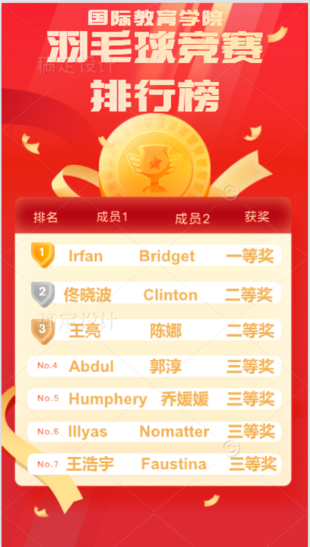为深入开展“我为群众办实事”实践活动,充分发挥基层党员先锋模范作用,在进一步做好常态化疫情防控工作的同时丰富在校留学生的校园生活,减轻长期封校给学生带来的身心压力,国际教育、学报编辑党支部于2021年11月期内开展了“阳光下党旗飞扬、赛场上斗志激昂”为主题的师生羽毛球比赛党日活动。 此次师生羽毛球比赛进行了为期三周的循环赛,参赛选手秉承“友谊第一,比赛第二”的信念,在比赛中全身心投入,全力拼搏,比赛过程中时常有精彩的拦网和扣杀,展示了选手们良好的球技和奋发向上的承医风采。 (点击即可产看原图)