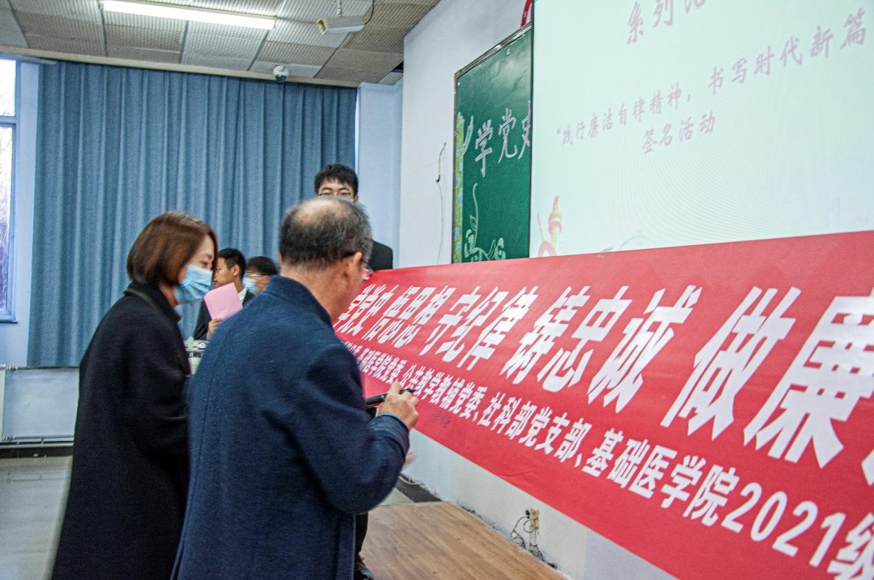 为进一步深化同学们对于廉洁精神重要性的认识,现场开展互动问答活动,围绕“廉洁与当代医学生”的关系,引导同学们从自身出发,分享对于廉洁精神的感悟,思考如何身体力行践行廉洁精神,做诚实守信承医人。组织全员进行“践行廉洁自律精神,书写时代新篇章”签名活动。以签字的形式,做出承诺:将廉洁精神贯彻于整个学习、工作、生活的过程之中,时刻牢记诚信守纪,做品德高尚的承医人。