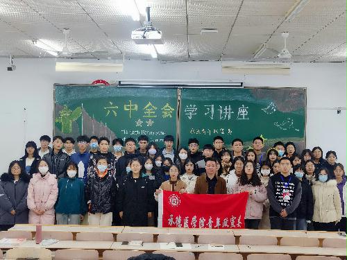 为提高承德医学院青年政治宣进委会全体成员政治意识,加深对十九届六中全会核心思想的理解,贯彻十九届六中全会精神,2021年11月17日晚上7:00,承医青年政宣委于教学楼105教室开展学习十九届六中全会精神讲座,本次讲座由李小彬老师主持,承德医学院青年政宣委全体成员参加本次讲座。 李小彬老师在讲座中详细而深刻的讲解了此次六中全会精神,通过逐层介绍大会通过的决议,全面总结大会议程。在讲座中通过答题的方式,使同学们更加地深刻了解了六中全会相关精神,号召同学们紧跟党的步伐,紧密团结在以习近平同志为核心的党中央周围,全面贯彻习近平新时代中国特色社会主义思想,大力弘扬伟大建党精神,勿忘昨天的苦难辉煌,无愧今天的使命担当,不负明天的伟大梦想,以史为鉴、开创未来,埋头苦干、勇毅前行,为实现第二个百年奋斗目标、实现中华民族伟大复兴的中国梦而不懈奋斗。最后,全委合影留念,此次学习讲座圆满结束。 此次讲座的成功开展,加深了全委对十九届六中全会精神的系统性了解,内化于心,外化于行,坚持正确党史观、树立大党史观,不忘初心,不断进取,为实现中国梦贡献青春力量。 (点击每张图片即可查看全图)