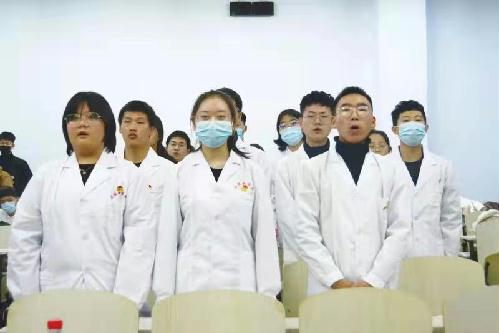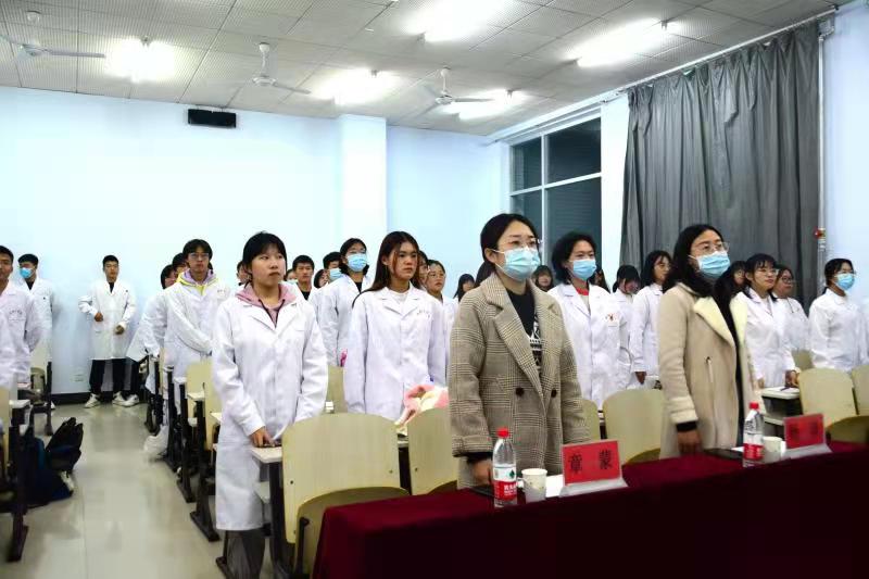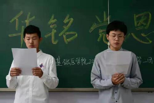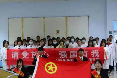 为引领团支部成员了解我党的伟大成就,发扬红色传统、传承红色基因,赓续共产党人的精神血脉,更加坚定党的领导,2021年11月4日,基础医学院2021级医学影像学第二团支部于教学楼举办“青春同心,强国有我”主题团日活动。基础医学院2021级第二学生工作办公室辅导员老师章蒙、杨言参加本次活动。 活动在展团旗、唱团歌中拉开了序幕,老师和全体同学起立合唱共青团团歌。团支部全体成员重温习近平总书记在“七一”重要讲话中对青年人的寄语,点燃梦想的力量,坚定把青春奋斗融入党和人民事业的决心。全体人员共同观看孟晚舟女士回国演讲视频,学生代表上台演讲《惜韶华 铭党恩》。全体团员以慷慨激昂、精神饱满的状态诵读《中国少年说》,倾诉着对祖国母亲、对党的热爱之情。 (点击每张图片即可查看原图)