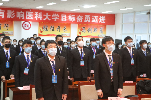 2021年12月5日,承德医学院第三次学生代表大会暨第二次研究生代表大会在图书馆八楼多功能厅召开。校党委书记盛婉玉,党委常委、副校长张凯出席开幕式。校有关部门、各院(系)主要负责同志以及学生代表、列席代表参加大会。 张凯致开幕辞,他说,过去一年学生会、研究生会围绕中心、服务大局,坚持聚焦主责主业,立足学生主体地位,服务同学成长成才,不断深化改革,锐意进取。在营造优良学风、繁荣校园文化、推动创新创业等方面扎实开展各项工作,取得了显著成绩,为学校全面落实立德树人根本任务发挥了重要作用。他勉励学生们,要在学校党委的坚强领导下,认真学习贯彻习近平总书记关于青年工作的重要思想,紧跟时代步伐,紧密围绕学校中心工作和服务学生成长成才的大局,勇于自我革新,不断增强政治性、先进性、群众性,以昂扬的斗志、饱满的热情、不懈的努力,不断开创学校团学工作的新局面。 盛婉玉代表学校对第三次学生代表大会暨第二次研究生代表大会的召开表示热烈祝贺,向参会代表及全校青年学子致以亲切的问候。她对过去一年学生会、研究生会的工作给予了充分的肯定,并就如何持续推进学生会组织改革提出三点意见:一要志存高远、坚定信念。广大学生要始终坚持以习近平新时代中国特色社会主义思想为指导,树立正确的世界观、人生观和价值观,始终把个人前途与国家命运深融在一起,胸怀理想,坚定信念,脚踏实地,奋勇争先。二要刻苦学习、知行合一。广大学生要弘扬“政治坚定、仁爱至诚、敬佑生命、甘于奉献”的承医精神,惜时如金,只争朝夕,勤奋学习,敏于求知,做到知行合一、以知促行、以行求知。三要勇于创新,矢志奋斗。新时代承医人要积极投身创新创造实践中来,有敢为人先的锐气,有上下求索的执著,力争有所突破、有所发展、有所建树。身为一名医学生,应该承担时代责任和担当,争取为祖国医药卫生事业的发展和人类身心健康做出应有的贡献。 开幕式结束后,召开全体会议。第二届学生会主席团成员张薇同学作了主题为《矢志追求新高度,聚力奋进新征程,为建设有特色有影响的医科大学凝聚青春力量》的工作报告。第一届研究生会主席团成员李金尧同学作了主题为《肩负使命,凝心聚力,全力打造学习型、服务型、创新型研究生会》的工作报告。宣读了主题为《感悟初心担使命,逐梦青春展芳华》致全校青年学生的倡议书。大会选举产生承德医学院第三届学生会常任代表委员会、第二届研究生会常任代表委员会、第三届学生会主席团、第二届研究生会主席团。审议通过了《承德医学院学生会章程(草案)》、《承德医学院研究生会章程(草案)》、《承德医学院学生会(研究生会)组织改革方案(草案)》。