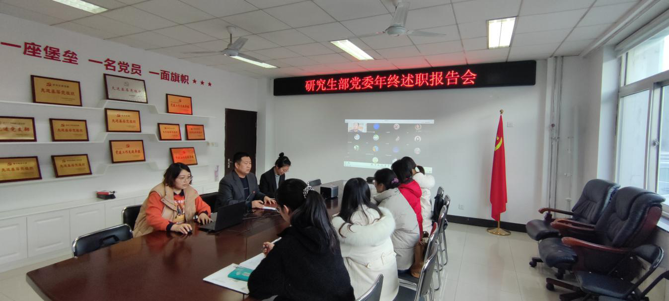 为进一步督促研究生学院党支部书记认真履行第一责任人职责,深入推进党支部建设,根据中共承德医学院委员会《关于做好2021年度党组织书记抓党建述职评议考核通知》要求,2021年12月7日下午,研究生学院党委在行政楼101党员活动室召开2021年党支部书记抓党建述职评议会,会议采取线上线下相结合的方式进行。研究生学院党委教工党支部全体党员以及全体学生党支部书记和委员参加会议。会议由研究生学院党委书记苗光新主持。 (点击图片即可查看原图)
