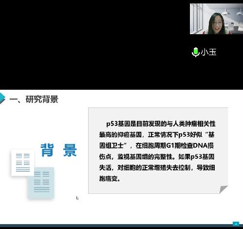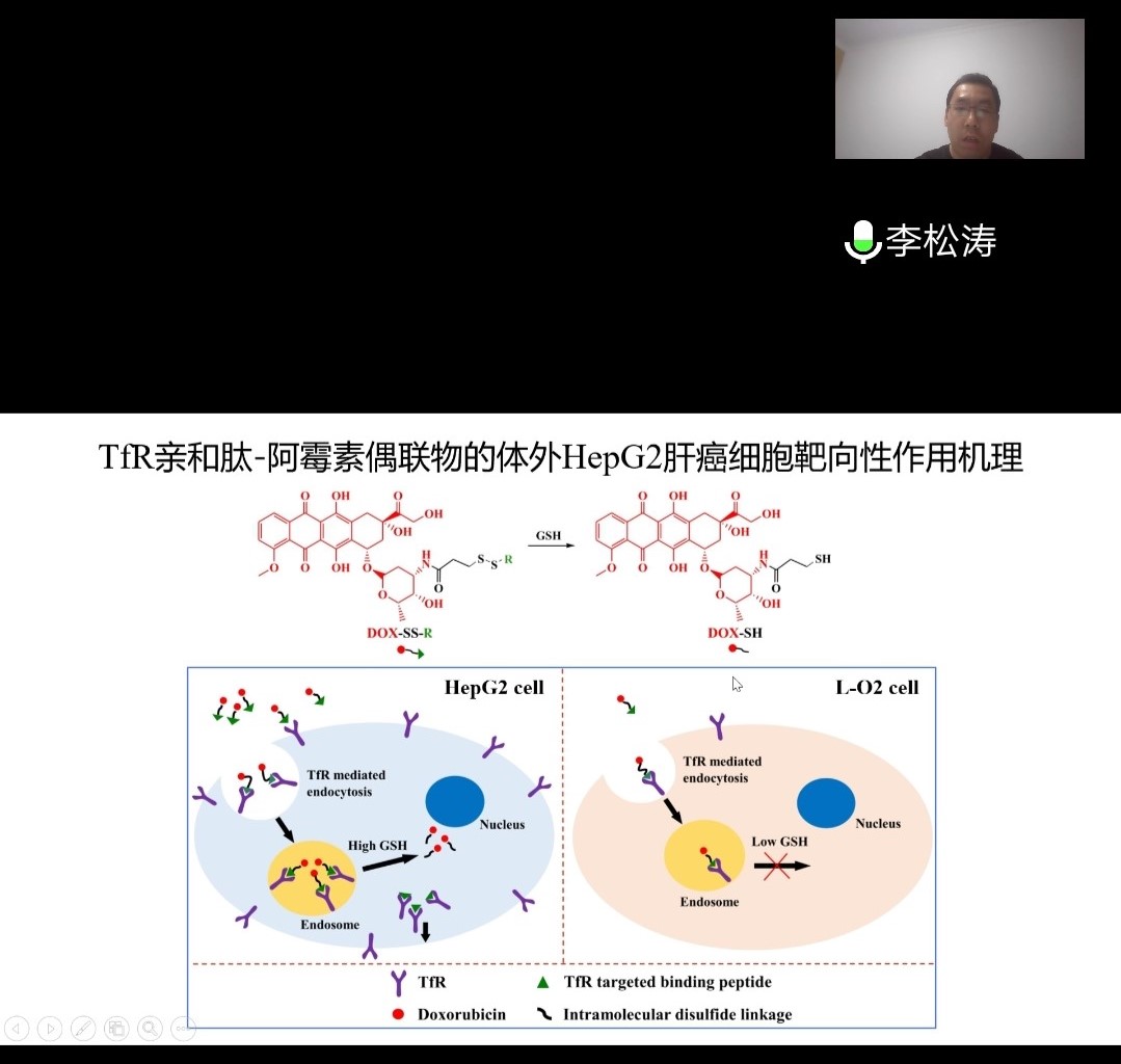 2021年12月10日,第20期“博士论坛”学术沙龙活动在线上举办。科技处、学术沙龙委员会邀请来自中药所李松涛博士、基础医学院程玉博士进行学术汇报。本次活动由科技处王晖主持,学校部分教师、研究生参加。 李松涛博士的报告以“TfR亲和肽-阿霉素偶联物的体外肝癌细胞靶向性研究”为主题,将转铁蛋白受体(TfR)亲和肽介导的靶向药物递送与肿瘤细胞微环境还原响应性断键的桥连结构相结合用于设计、合成多肽-阿霉素偶联物,具有体外肝癌细胞TfR靶向性以及细胞内定位降解释药的双重功能,能够有效提高阿霉素对TfR过表达肝癌细胞的选择性杀伤作用,并减少其对正常组织细胞的毒性,为新型TfR靶向抗肿瘤药物的研究提供有效思路。 程玉博士的报告以“RNF19A通过泛素化降解p53促进NSCLC细胞增殖和抑制细胞凋亡”为主题,结合公共数据库资料及临床样本,检测分析 RNF19A在 NSCLC组织中的表达及其临床意义,在细胞模型中分析RNF19A对 NSCLC细胞生长、增殖、凋亡的影响,并探讨其调控抑癌基因p53的具体作用机制,有助于深入了解 NSCLC发生展过程中 p53失活的机制,为 p53野生型的NSCLC患者的诊断和靶向治疗提供了新思路。 两位博士的讲座为大家带来了新的视角,提供了新的思考方向。而后,参会师生纷纷就感兴趣的研究内容进行提问,两位博士耐心解答。第20期“博士论坛”学术沙龙活动圆满结束。 (点击文中每张图片即可查看原图)